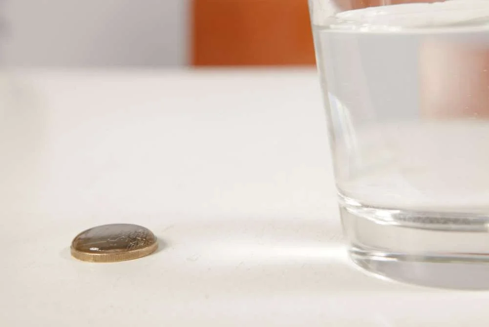 Kuinka monta pisaraa vettä kolikon päälle mahtuu? Seuraa, miltä kolikko näyttää.